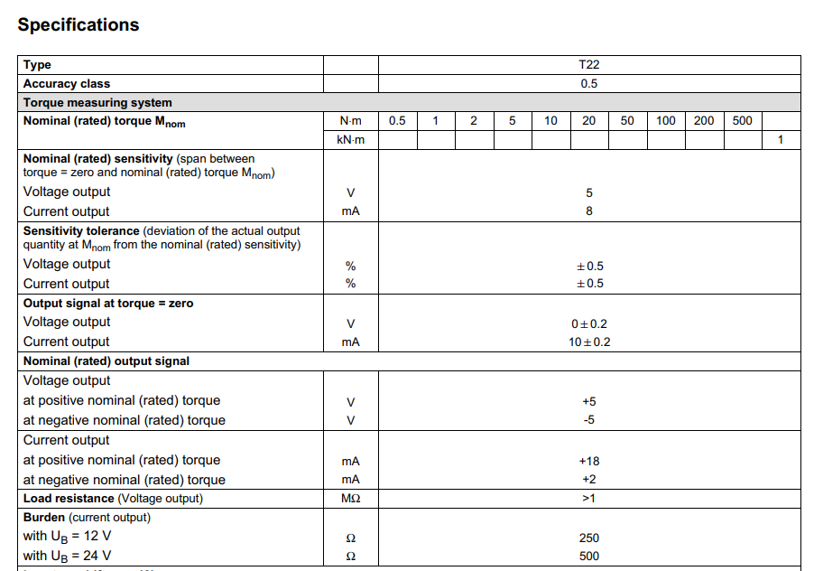 T22/0.5Nm, T22/1Nm, T22/2Nm,T22/5Nm,T22/10Nm,T22/20Nm,T22/500Nm,T22/1KNm