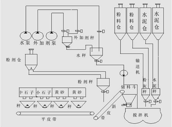 混凝土自動稱重配料系統(tǒng)工作流程如下圖所示