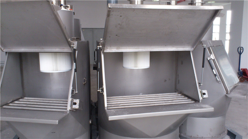 根據(jù)不同的物料特性,設(shè)計(jì)有多種除塵模式:透氣布袋除塵、濾袋式除塵、濾筒式除塵還可以外接中央除塵系統(tǒng);